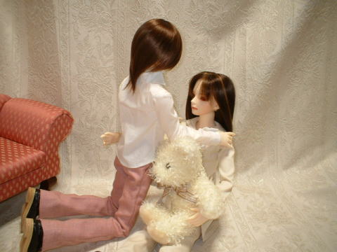 だが精神面ではくまのぬいぐるみと無邪気に遊ぶ幼子のころから