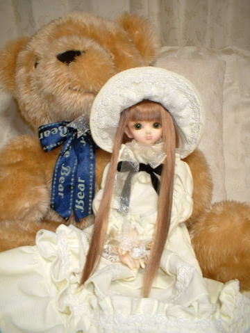 ![]() 「月下の夜想曲」さまより頂きました。 甘い香りのしそうな生成りのドレスです。 実際はもう少し濃くて、カスタードクリーム のような色合いです。 ふわふわした同士での記念撮影。 ![]() |