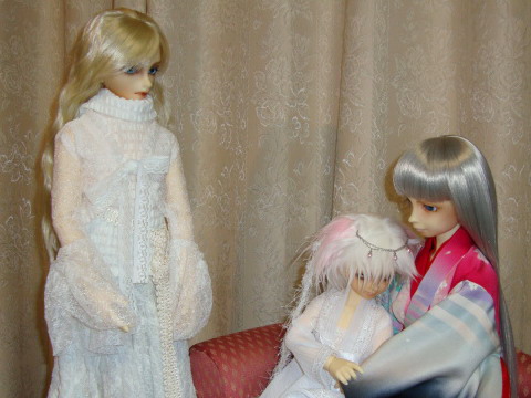 氷雨 「う、、、ごほっ、げぼ、ふぇ、、、び〜っ(大泣)」 幻珱 「氷雨、大丈夫か?」 氷雨 「父さま、、、、ふぇ〜ん、、、」 更紗 「苦しかったでしょう。ごめんね」 氷雨 「うぇ、、、、ひっく、、、」 幻珱 「まったく、、、、誰が劇薬なんか」 更紗 「氷雨君、これを飲んだの?」 氷雨 「甘かったの。甘くておいしかった」 更紗 「甘い劇薬、、、、まさか」 幻珱 「、、、いえ。ここの住人がそんなこと」 更紗 「けれど、氷雨君がこれを飲んで 幻珱 「理由がない」 更紗 「、、、、、、」 幻珱 「、、、、、、」 |