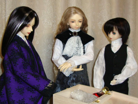 数時間後 銀月 「開いたぞ」 珂晶 「本当ですか」 珠莉 「さすがだな」 銀月 「しかしこれは、、、、」 珠莉 「何が入って、、、、、」 珂晶 「よかった。ありがとうございます」 珠莉 「これって、激辛せんべいと激甘砂糖菓子とお酒?」 珂晶 「はい。どれも貴重な原材料を使っているので 珠莉 「どこで手に入れたんだ」 珂晶 「絡瑛さんの兄上が送ってくださったそうで 銀月 「いくら珍しいからといって、ここまでするほどの物か」 珂晶 「味付けが極端なのと、お酒は飲みやすいうえに 銀月 「どういうレベルなんだ」 珂晶 「ともあれ、大帝と氷雨と香玉を悲しませずにすみます。 銀月 「、、、、、いや」 珂晶 「さて、新しい鍵をつけないと」 |