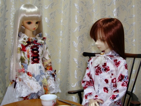 数日後。 「お帰りなさい。、、、、どうしたの」 外出から戻ったリアドは、花束を抱えていた。 「誕生日だろう」 「、、、、私に?」 「いらなければ適当に処分してくれ」 「そんなわけないじゃない」 ディアナは慌てて受け取る。 「嬉しいわ。ありがとう」 「通りかかっただけだ」 「その時に、私の誕生日を思い出してくれたんでしょう。それで十分」 生花に何かしらの加工をしたのだろう。光を受け美しく光る。 「水に差さなくてもいいのかしら」 「店の人間はそのままでも大丈夫と言ったな」 「じゃあ好きな場所に飾れるわね。どこに置こう」 ディアナは久し振りに笑顔になった。リアドが初めて見る顔。 「初めて笑ったな」 「、、、、あなたの気持ちがそうさせてくれたのよ」 「花一つでか」 「花とか宝石、物は関係ない。 心など、一番当てにならないと思っていた。信じてもいいのだろうか。 「父は仕事ばかり。家の利益のために結婚した母は 「あなた、、、、」 「最初から望まなければいい。そう思っていた。 やはり、その心にあったのは寂しさ。ディアナはそっと寄り添う。 「ええ」 その微笑みを、リアドは優しく抱いた。 |