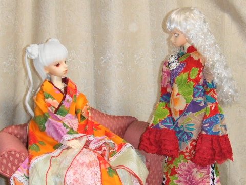 真白 「ふう、こっちの姿になったのも久しぶりね。 珀翠 「やっぱり、、、真白だったんだ」 真白 「気がついてた?」 珀翠 「何となく」 真白 「懐かしい顔に会えて嬉しいわ」 珀翠 「今までどうしてたの」 真白 「猫の姿でいたときに、親切な人に拾われたの。 氷雨 「猫さ〜ん。どこにいるですか〜」 真白 「これなら氷雨も気がつくかしら」 珀翠 「氷雨、こっち」 氷雨 「あい?(てけてけ)、、、、」 珀翠 「覚えてる?妖しの里で一緒だった真白」 氷雨 「真白さん、、、、あの猫さん、真白さん?」 真白 「そうよ。名前当ててくれたわね。元気だった?」 氷雨 「うん。魅影さまも珂晶さまもいるし、お友達もできた」 真白 「そう、よかった」 珀翠 「大帝とは話したの?」 真白 「まだよ。人の姿で誰かと話したの、今が初めてだもの」 珀翠 「一回りしておいたほうがいいかな。人数多いけど」 氷雨 「みんなのところ行こう」 |