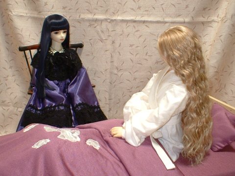 「、、、、ん、、ここ、、は、、」 目が覚めて見えたのは天井だった。 「まさか、、、」 ゆっくりと体を起こし、胸に手を当てる。鼓動は確かだった。 「助けられたのか、、」 人が通るとは思っていなかった。日が翳った後の夜の道だ。 近くを通ったとしても 普通にとれば、運がよかったのかもしれない。 だが、ジェラールにとっては逆だ。 「君が、、、助けようとしたのか?会ってはくれないのかい」 答えを求めたくとも、相手はいない。 短いノックの音がした。 一拍の間を置いて入ってきたのは一人の女性。 真っ直ぐ伸びた藍色の髪に、鮮やかな紫のドレスを纏っている。 「気がつきましたか。よかった」 「あなたが私を?」 背が高い人ではあったが男一人担げるとは思えない。 ジェラールの問いに、女性は首を横に振った。 「クレスティアと申します。あなたを見つけたのは 「ジェラールです。、、、ありがとうございました」 助けてくれた相手に死ぬつもりだったとは言えず 「怪我は無いとのことでしたが、もう夜ですし外は雨。 「一人、、ですか?」 「主人を亡くし、子供もいませんでしたから。 ジェラールは部屋を見渡した。 華美ではなく、上質のものを品よく揃えた部屋。 この部屋だけでも、それなりに格のある屋敷だと思う。 「お一人では寂しいでしょう。それに無用心では」 「、、、正直、後を追うことも考えました。 「、、、、、」 それは、ジェラールに向けられたものと同じ。 だが、その言葉を思い出すたびに心が締め付けられる。 それを抱えながら生きるのが苦しくてこの町に来たのだ。 「強い人だ、、、あなたは」 無意識に言葉にしていた。 「何か温かいものをお持ちしますね。 「わかりました。お断り無く、足を向けることはしません」 「では、、ごゆっくり」 クレスティアは軽い会釈をすると静かに部屋を出て行った。 「君が、、、あの人に会わせようとしたのか?だけど、、、」 ジェラールの問いに返ってくるのは、雨音だけだった。 |