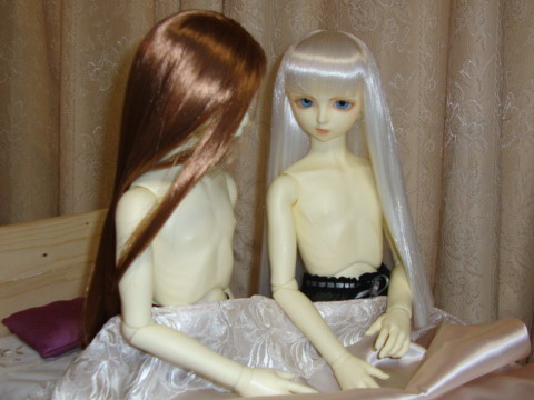「おい、ガレリア。大丈夫か?」 「何が?」 (予想外だぞ、これは) 行商から手に入れた酒は、この地方では珍しいという。 酒らしからぬ飲みやすいもので、2人でグラスを傾けていたのだが 「おいしいね、これ。本当にお酒なのかな」 「、、、、これくらいにしておくか。 「あと一杯くらいだよ。もらうね」 「な、ちょっと待て」 止めるよりも早く、ガレリアは最後の一杯を飲み干した。 「、、、、、」 「どこで買えるんだろう。また手に入るといいな」 白い肌はほんのり色づき艶を帯びている。 まとう色香は妖艶でもあった。 当人に自覚がないのは、はたしていいのか悪いのか。 「ねぇ、、、、」 ガレリアは言って口づけた。 「レイス、いいでしょ」 「って、、、、おい」 のど元におちる唇。 服とはいえないほど透けるローブのまま、肌を寄せる。 「いつも抱かれてるから、 素面ならありえない台詞をさらりと言ってのける。 「(最初で最後だろうな)、、、、、かまわないよ。 「ふふっ、、、、」 妖艶な笑みを浮かべ、ガレリアはレイスの手を取った |