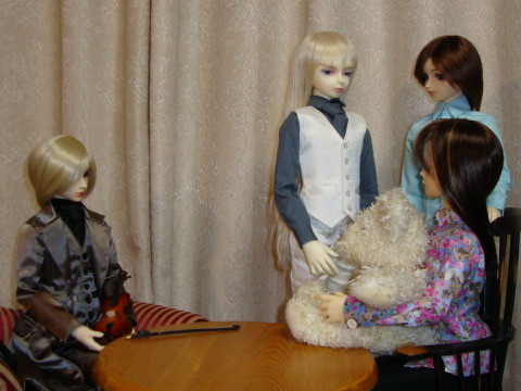 続くアンコールに応じ終わった頃には アルドは支配人部屋へと向かった。 ノックをして部屋に入ると、そこにはフィータとオルガがいた。 「来ていただいていたんですか」 「ロビーよりはこちらのほうがいいかと思いまして。 「こちらこそ、お世話になりました」 「どうぞ」 アルドはフィータと向き合った。 「先日は驚かせてしまってすみませんでした」 フレデリックを抱きしめたフィータは首を横に振る。 外見よりもずっと幼いのだ。 「もう一度、聴いてもらえるかな」 「、、、、、うん」 「ありがとう」 構えたアルドは奏で始めた。 じっと耳をすませるフィータを2人が見守る。 流れる緩やかな旋律。綺麗だと思う。 同時に蘇るのはあの時の言葉。 知らず手に力が入っていた。 「フィータ、大丈夫か」 「、、、うん」 (もう少しだから最後まで) そう願いながら演奏を続け、最後まで弾き終えた。 アルドは静かにバイオリンを下ろす。 「どうでしたか」 「えっと、、、、」 フィータは言葉を探す。 感じたままではなく、怒られない言葉を。 それは無意識だったが、アルドのほうが先に気が付いた。 「感じたままでかまいません。どんな言葉でも」 「、、、、きれい」 素直に言葉にするのならこうだ。 フィータは小さく体をすくめた。 怒られる。その思いがよぎった。 しかしアルドが見せたのは微笑み。 「ありがとう」 「怒ってないの?」 「勿論ですよ。そう言ってもらえると私も嬉しいです」 「同じ曲だよね。あの時と」 「ほぼ同じものです」 「どうして、、、あの時怒ったの」 それに答えるには父がしたことを説明しなければならない。 しかしフィータがそれを理解できるだろうか。 その答えを、アリエルよりも先にアルドがだした。 「同じ曲でも、弾いている人の気持ちによって 「弾いてる人の気持ち」 「私は、フィータさんがこの曲を好きになってくれるように 「お父さん、、、、」 ゆっくりと思いだしてきた。 怒鳴った父は、驚いて動けずにいた自分を抱きしめたのだ。 そして、二度とあの曲を聴くことはなかった。 「お父さんとお母さんと、皆で聴きたかったな。 みることは叶わない光景。 寂しそうにうつむいたフィータの手を 「父さんも母さんもお前も見守ってる。 「アリエルもオルガもフレデリックも、みんな一緒だよね」 「ああ、一緒にいる」 にこりとフィータは笑顔になる。 だがアルドには、それが透明な呪縛のように思えた。 「フィータ、そろそろ帰ろう。 「うん」 フレデリックを袋に入れて、それを抱える。 「じゃあ、アリエル。先に帰るな」 「ああ」 「また機会ができたら、聴かせてもらいます」 「アルドさん、またね」 「私も、また会えることを楽しみにしています」 「ばいばい」 |