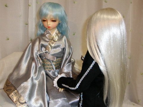 淡い灯りに影が浮かぶ。 「イーリス」 「いっ、、、た、、」 「大丈夫ですか?怪我は」 近づいて見えたイーリスのなりに足が止まった。 深い蒼だった髪は淡く美しい翡翠色。 見慣れない服は己の翼と同じ白銀の輝きだった。 似合いそうだからと、闇戯が渡したもので 一通り終わったところに思いがけない声が聞こえ どうして追いかけてきたのかと、問う気力も失せた。 「どうしてこんな時に、、、、、」 「また美しい姫のようだといったら怒られるかな」 「もう、、、好きになさってください」 がっくりと肩を落としたイーリスに手を差し出す。 「足を痛めていなければいいけれど、立てますか」 無言でルトヴァーユの手を取り椅子に座った。 「置き手紙だけで出てきたこと、怒っていらっしゃいますよね」 「あなたやヴィクトリアに辛い思いをさせてきた。 「でしたらもう、私のことは放っておいてください。 イーリスはルトヴァーユを見ようとしなかった。 「私はあなたに戻ってほしい。それを伝えにきたんです」 「つ、、、、、」 小さく唇をかむ。 自分に非難が向くのならいい。 けれど以上のものがルトヴァーユにいくのだ。 まして追いかけて連れ戻したとなれば 「その結果がどうなるか、おわかりにならないのですか」 「今の状態で戻ってくるのは難しいでしょう。 「同じことです」 「離れが無理なら、せめて有翼側に戻ってほしい。 「どうして、、、、」 「あなたに傍にいてほしいから」 素直に出てくる正直な想い。 飾らないからこそ、イーリスに真っ直ぐに届く。 「ルトヴァーユ様、、、、」 イーリスは胸をおさえていた。 「新しい居を見つけられるなり、考えが浮かんだらまた来ます。 「ヴィクトリアさんは」 「、、、、、、」 「ルトヴァーユ様のことを本気で心配しています。 「私は友人だと思っていた。 「ならばどうか」 「私は友人以上には見られない。 ルトヴァーユはイーリスの前に回った。 「お互いに正直な気持ちを伝えた上で、私はここにいる。 言葉にならず、イーリスは首を横に振った。 ルトヴァーユも言えるのはここまでだ。 長くなってもイーリスに辛い思いをさせるだろう。 「どんなに時間がかかってもいい。 部屋を出るルトヴァーユを、イーリスは最後まで見なかった。 |