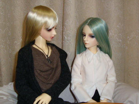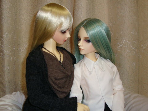 「ほんとに天使だな」 キュリオがいなければ、この想いが届くことはなかったろう。 そして虎丞がキュリオと出会わなければ この手で守りぬくこと。それを改めて誓った。 「絽帆」 部屋の扉が開いた。 「おはよう。体、辛くないか」 「うん」 すとんと隣におさまる。 虎丞はまだ眠たそうに目をこすった。 うつらうつらしている横顔。 絽帆は優しく、ただ見つめる。 「絽帆?」 「お前が隣にいることが、今は嬉しくてさ」 「すごく単純だね」 「そりゃ、お前に関することならいくらでも。 だが何故か、虎丞は沈んだ表情になった。 「どうした?無理させたか」 「僕は妖しで、絽帆は人でしょう。それって、、、、」 「気になることがあるなら言ってくれ。出来ることはする」 「何もなくてこのまま時間がすぎていけば 「虎丞」 「寿命の差は、どうしたって埋められない」 虎丞は、この苦しさを初めて知った。 (大切な人がいるって、こんなふうに苦しいんだ) ならばこそ、傍らにいる今を思いっきり抱きしめたい。 「絽帆は、他の町にも行ったことあるの?」 「ああ」 「じゃあ、連れてってよ。僕も。キエヌにしたって 初めてゆえの純粋な想い。 絽帆は虎丞の手を引いて 「後悔なんかさせるか」 「絽帆」 「お前との時間に命をかけたって惜しくはないよ」 「、、、、うん」 目を閉じた虎丞は心地よいぬくもりに身を委ねた。 いつかはくるそのその日には |
