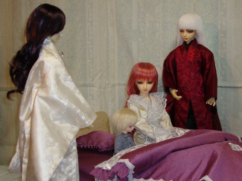 「ん、、、、」 小さな声が聞こえた。 「サイファ、聞こえておるか」 「無事かい?怪我は」 「大丈夫?痛いとか苦しいとか」 「3人同時に喋るな」 サイファは体を起こした。 「何を言っているのかわからない」 「と、すまぬ」 「ごめんなさい」 「戻ってこれたね。よかった」 「そっちも無事か」 「ええ。助けてくれてありがとう」 「そなたには、どれだけ礼をつくしても足りぬな。 見えないけれど互いを優しく包むような想いが 夢の中で一緒にいたのは、誰だったのだろう。 リシュナも知った相手のようだったが 夢使いとして求められた仕事は終わったのだし。 「夢使いとしての仕事をしたまでです。帰ります」 「少し休んでいって。お茶くらいしか出せないけれど」 「休んだほうがいいのはそっちも同じだ。 どこかに強がりがのぞく。 手を伸ばしても触れそうになると引きもどし、繰り返す。 「ここまでで、いいんだろう」 無理に引き止める理由はない。 今はまだ、サイファの心に寄り添うだけだ。 「力を貸してくれてありがとう。 「別に、、、かまわない」 「気が向いたら、ここにも足を向けてね」 「いつでも歓迎するゆえな」 「その気になったら、そうします。これで」 サイファはベットを下りた。 「失礼したします」 寄り添う想いで |
